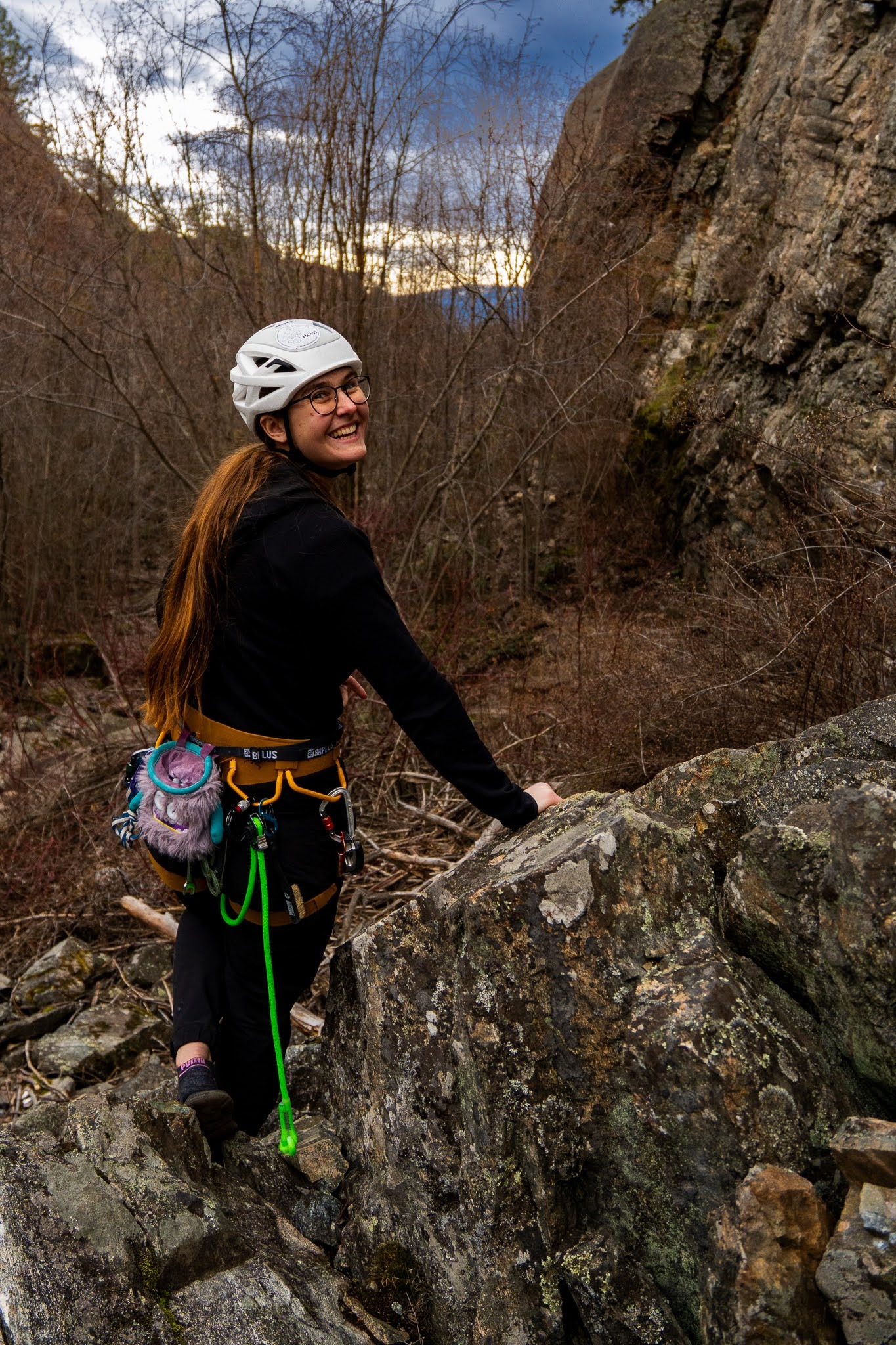 Born and raised in Kelowna, Robyn has a deep knowledge of the land around the Okanagan. Outside among the rocks and trees, she feels grounded. She loves any outdoor adrenaline sport, including canyoning, ice climbing, snowboarding and of course rock climbing. Robyn co-founded Rock On Collective because she knows the impact that a positive, welcoming climbing community can have. Her rock climbing journey has not been straightforward, but she has learned that progressing in climbing does not have to be a linear path and hopes to share that with others struggling to get into the sport. Her aspirations include developing her alpine climbing skills and continuing to learn about various Indigenous cultures and their connections with the land.
