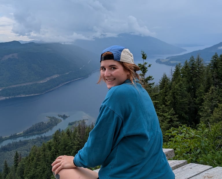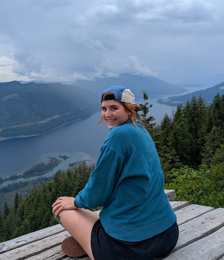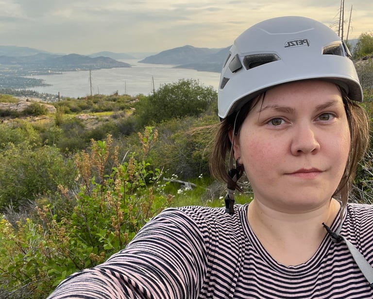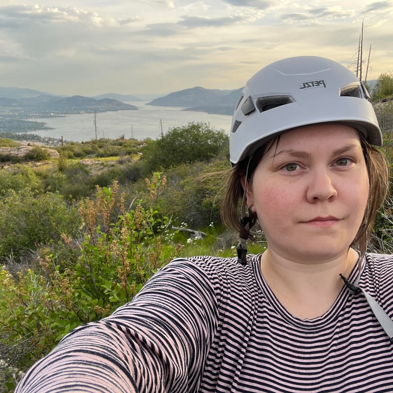 Ashley was born and raised in Calgary and made the choice to move to the Okanagan to finish her studies. Drawn to the landscapes of BC, she found her passions among the trees, sunshine and water. She loves hiking, paddleboarding and found her love of climbing a few years ago after taking an intro course at one of the local climbing gyms. Since then, Ashley has focused on trying to be outdoors as much as possible and climb some neat rocks in that pursuit. She wanted to share her love of climbing with others and make new connections within the climbing community, so she joined Rock On Collective both as a mentee for the 2024 program and as part of the team.